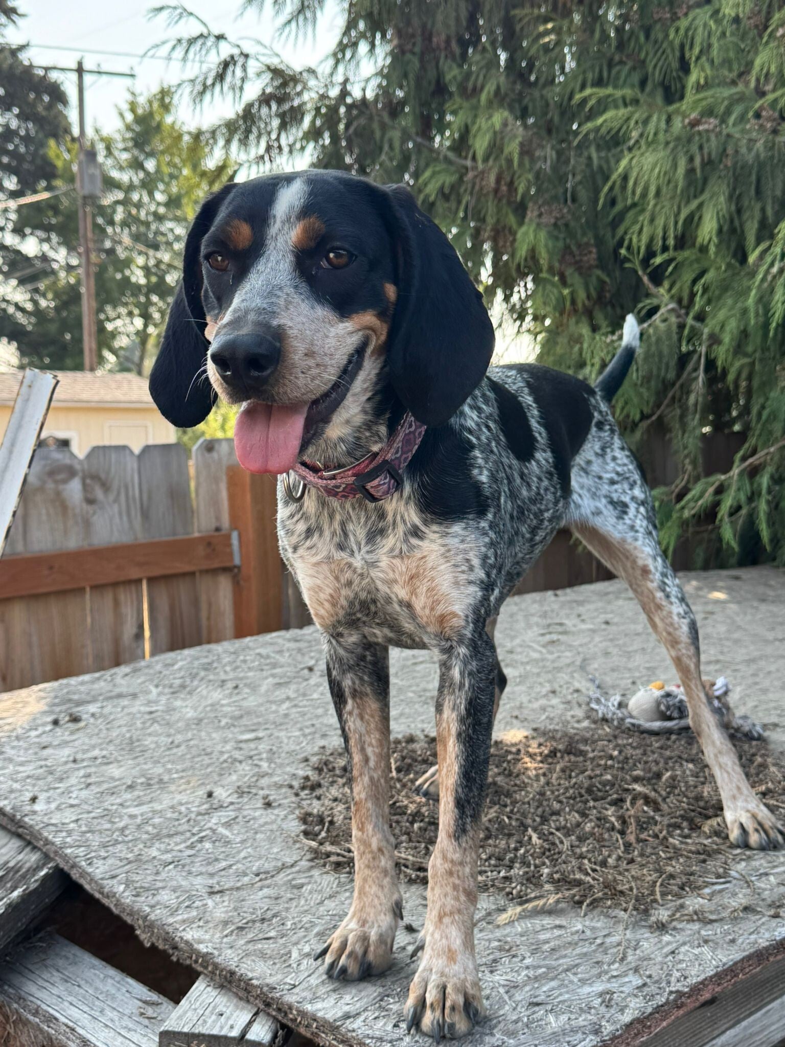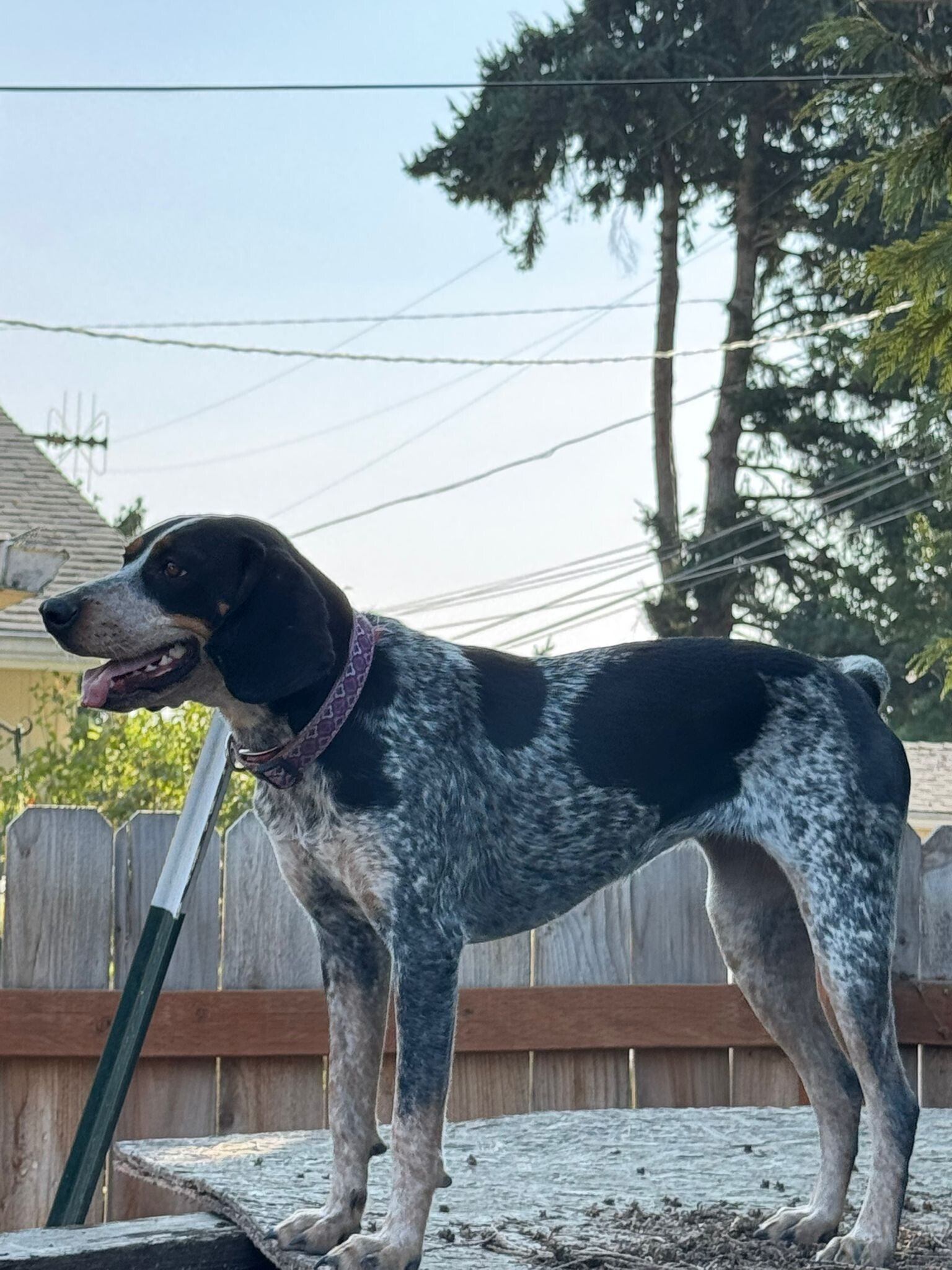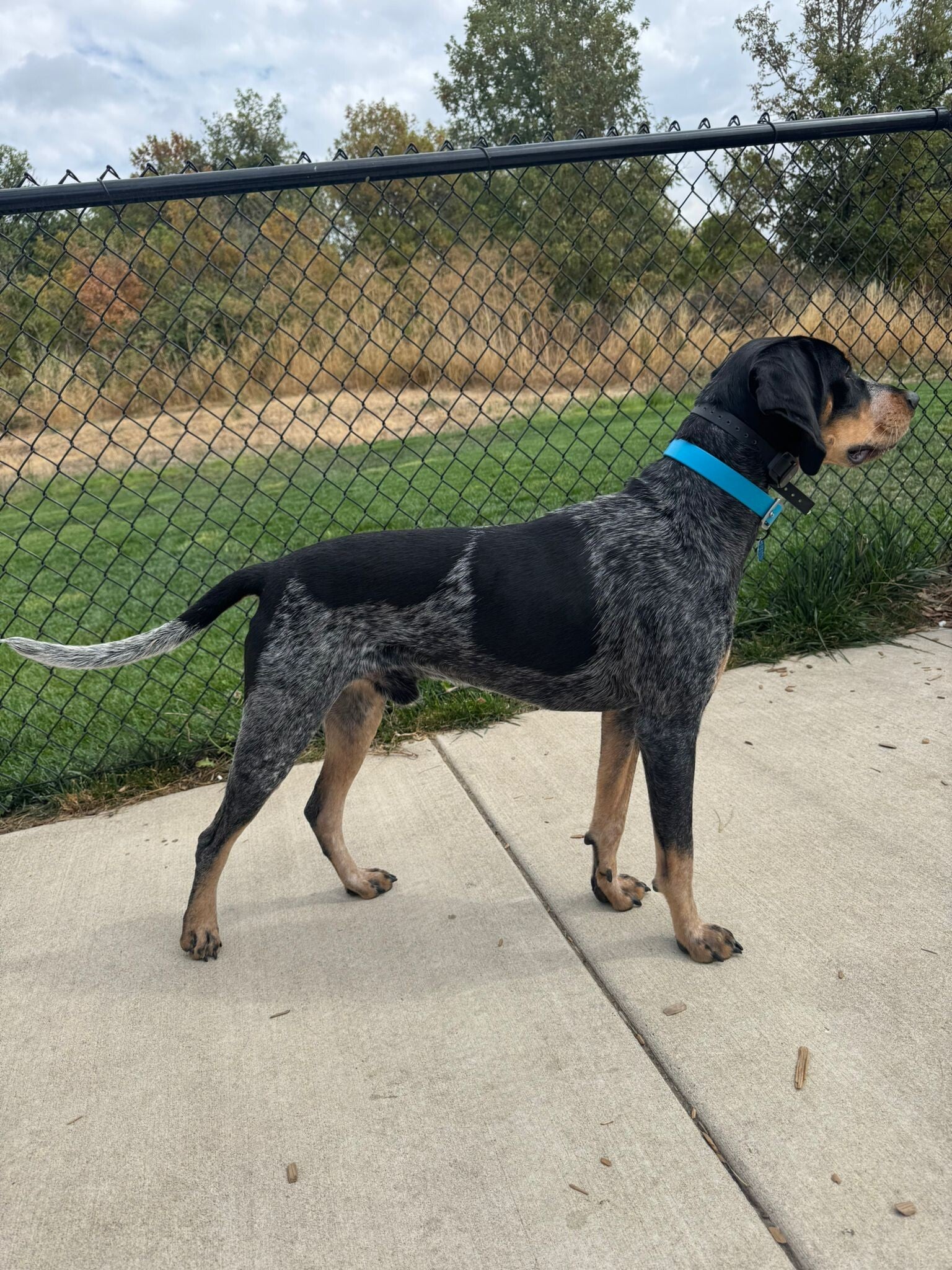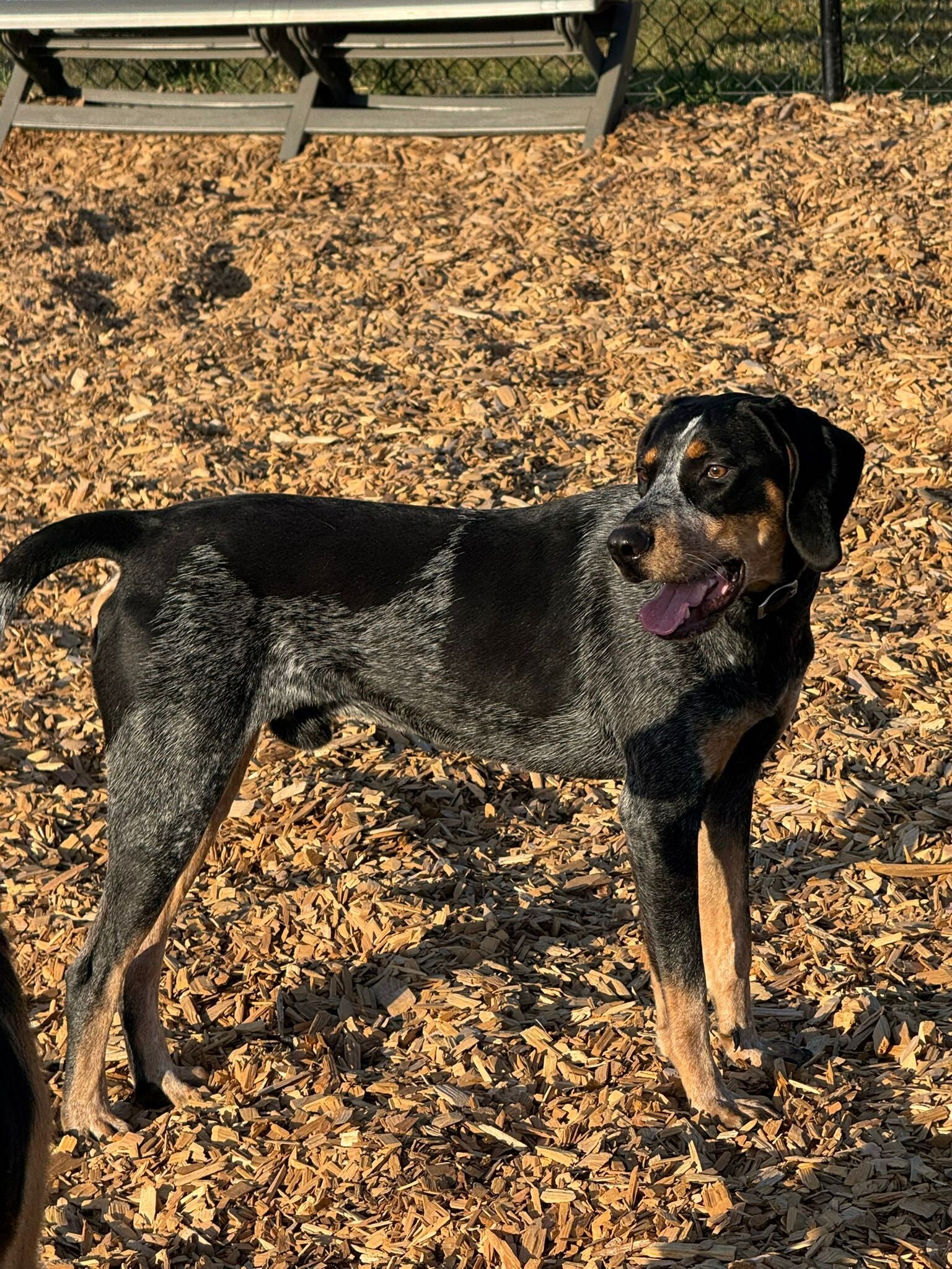 River truly embodies the essence of the Blue Tick Coonhound: intelligent, hardworking, and endlessly loyal, with a passion for both activity and connection.
